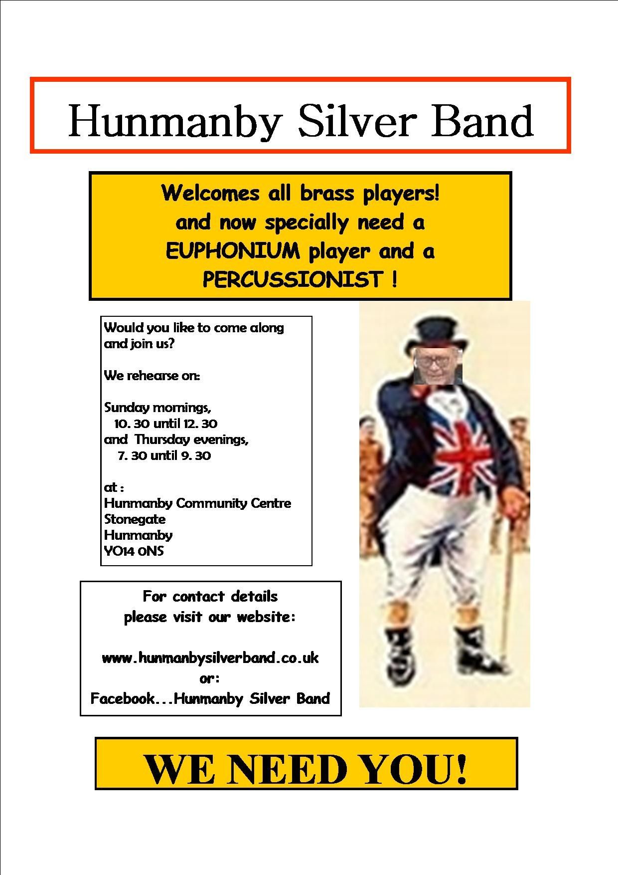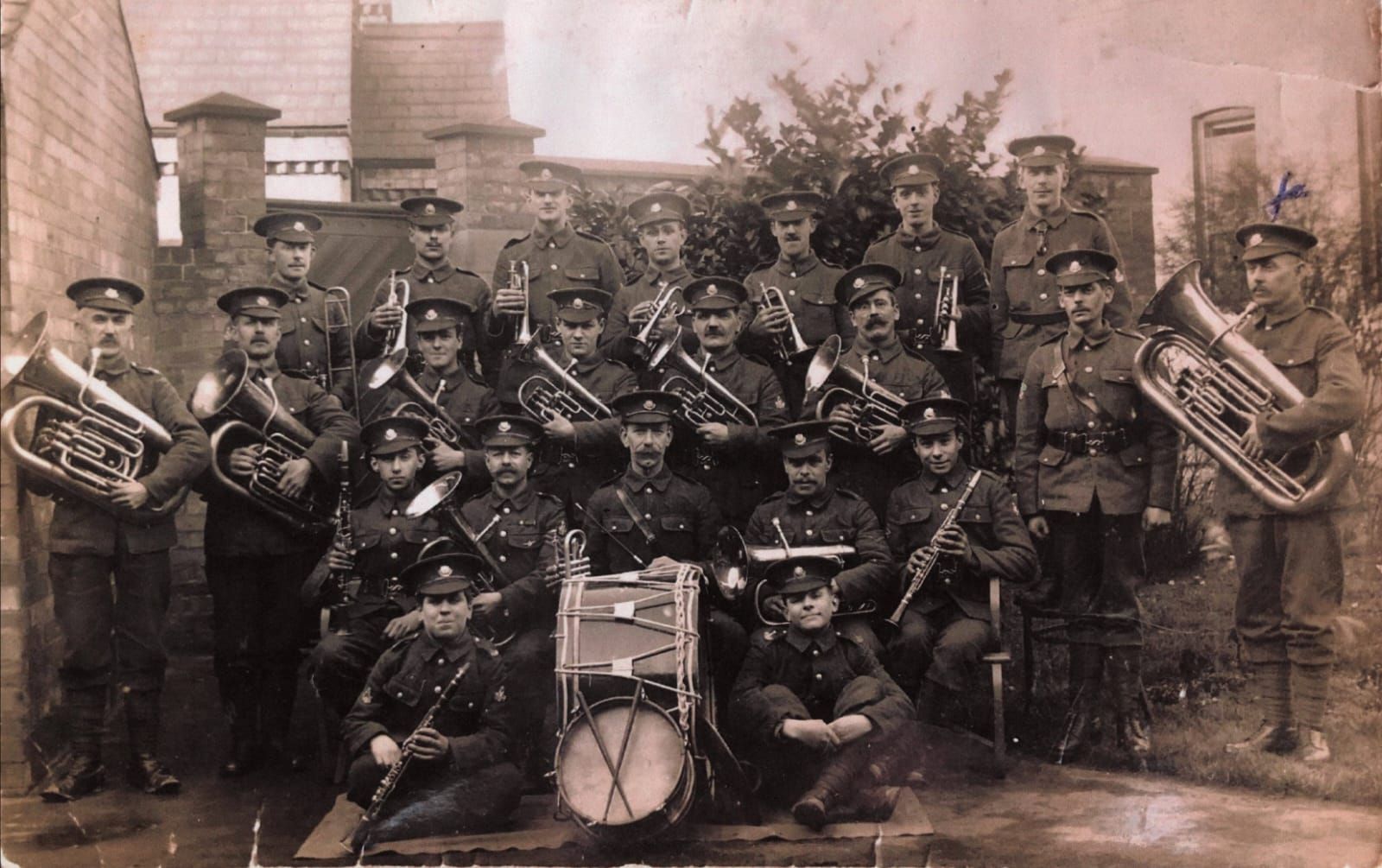 Our solo horn player, Denise Wood's great-grandfather, played in the Filey Town band. He was Amos Danby, pictured on the right-hand side on the bass. in the black and white photo below.