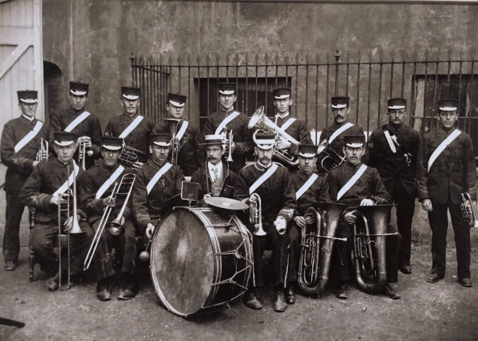 Our solo horn player, Denise Wood's great-grandfather, played in the Filey Town band. He was Amos Danby, pictured on the right-hand side on the bass. in the black and white photo below.